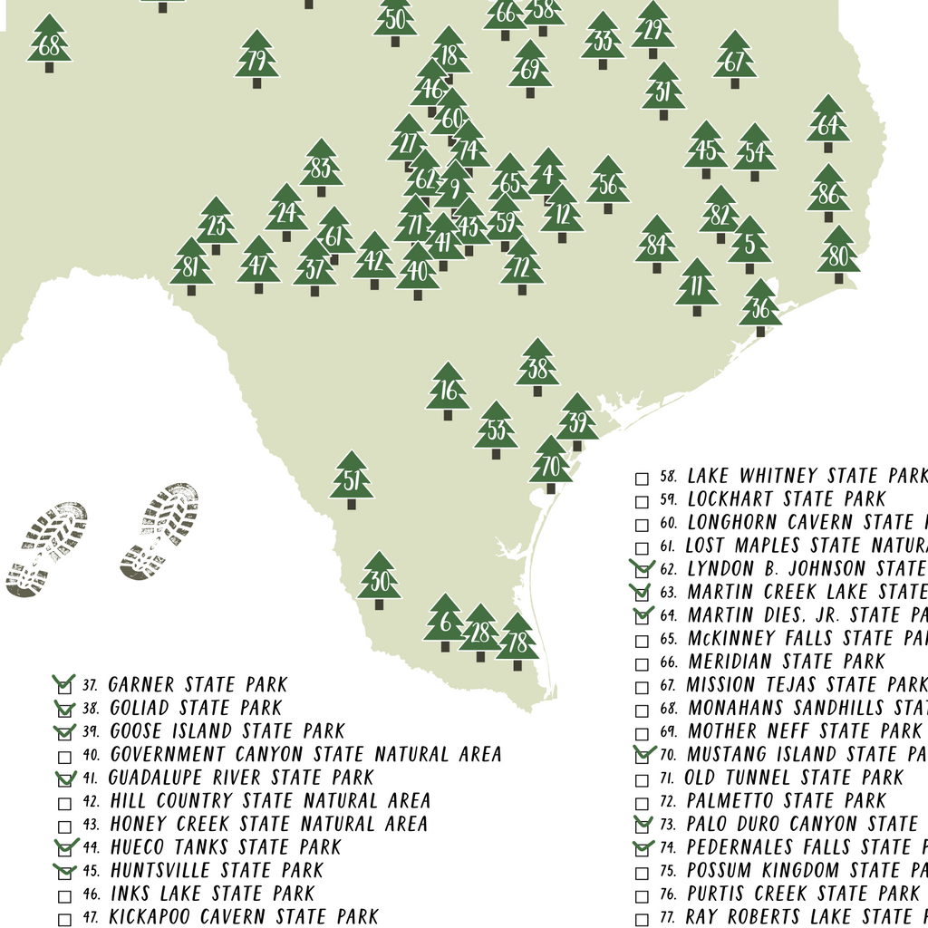Texas State Park Printable Checklist Map Texas Trail Company